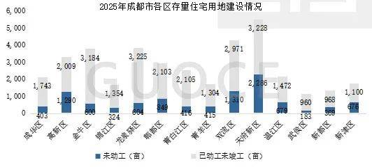 从土地征战形态来看,天府新区存量住屋用地面积最众,为5,514亩,此中未动工的存量住屋用地面积为2,286亩,已动工未实现的存量住屋用地面积为3,228亩;武侯区的存量住屋用地起码,仅1,142亩。