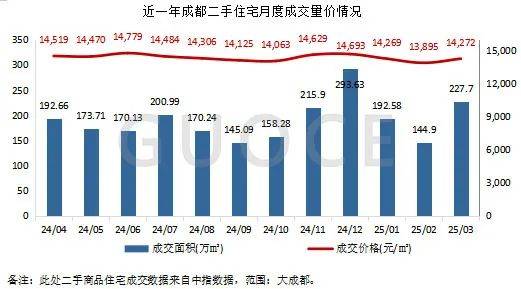 近一年,成都邑二手住屋成交均价较坚固,市集正在岁暮和3月成交炎热。2025年一季度成交面积共565.18万平方米。