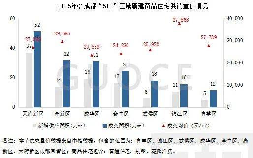 2025年一季度,成都邑“5+2”区域新修商品住屋共成交184万平方米,新增供应109万平方米,此中天府新区供销量位居第一;锦江区以3.79万元/平方米的成交均价位居第一。