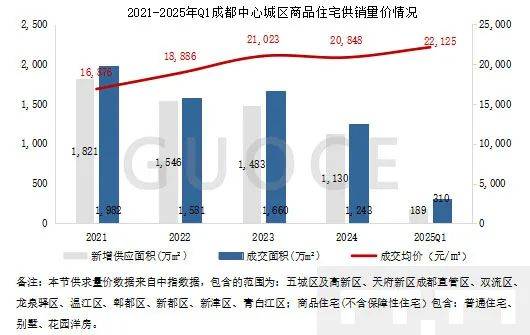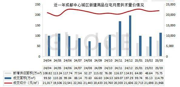 2021-2024年成都邑核心城区新修商品住屋供销量呈消浸趋向;成交均价照样保留上涨趋向;成交量均大于供应量,市集去库存显着。2025年一季度,共成交310万平方米,成交均价较2024年上涨6.13%。