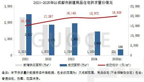 2021-2024年,成都邑新修商品住屋供销量逐年淘汰;住屋产物渐渐向刷新型住屋转型,成交均价呈上涨态势;成交面积完全大于新增供应面积,市集去库存显着。2025年一季度共成交366万平方米,成交均价为1.99万元/平方米,较2024年上涨5.03%。