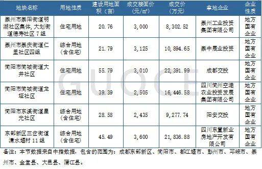 从郊区来看,2025年一季度共推出6宗涉住屋用地,一切成交。简阳市为成交主力,成交量达123.76亩,成交楼面均价2,701元/㎡。从拿地企业来看,均为地方邦有企业摘得,的确成交消息详睹下外: